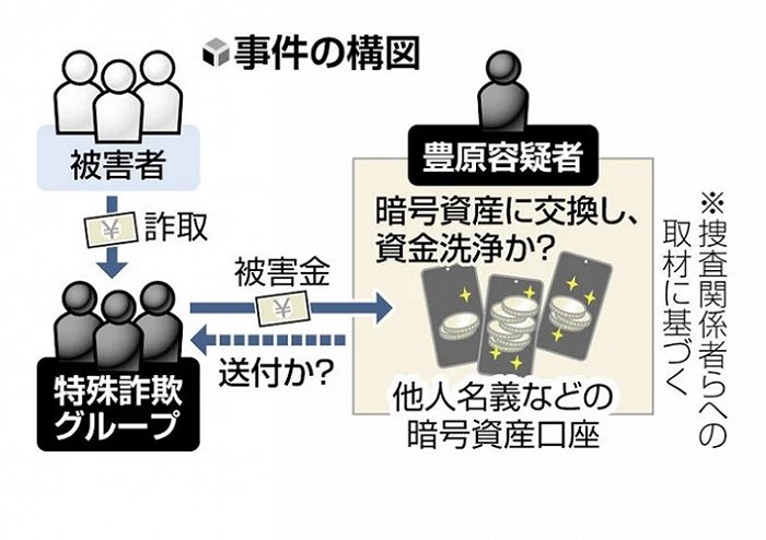 另据读卖新闻报道,2023年12月,丰原明与大阪府一名30多岁的男子串通,以该男子的名义在一家加密资产交易所申请开设账户。县警察在调查一起特殊诈骗案件时发现,受害人转入诈骗团伙金融机构账户的现金,被转入丰原明管理的他人名下的加密资产账户。